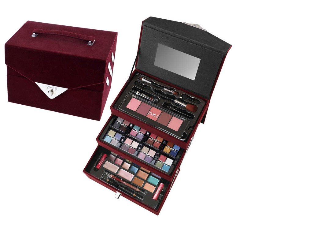 Bársony sminkes bőrönd – sötétbordó színben – Beauty Case Velvety dekoratív kozmetikai szett felnőtteknek a Zmile Cosmetics-től. Mostantól minden nap új, lenyűgöző megjelenést alkothatsz! Egy sminkkel teli bőrönd, mellyel igazi profi sminkmesternek érezheted magad. Gyorsan és könnyedén megtalálsz benne mindent, amire szükséged van ahhoz, hogy kiemeld előnyös vonásaid, hangsúlyozd szemeidet, orcáidat, ajkaidat és körmeidet. Rengeteg termék praktikus csomagolásban. Minőségi sminktermékek megfizethető áron.