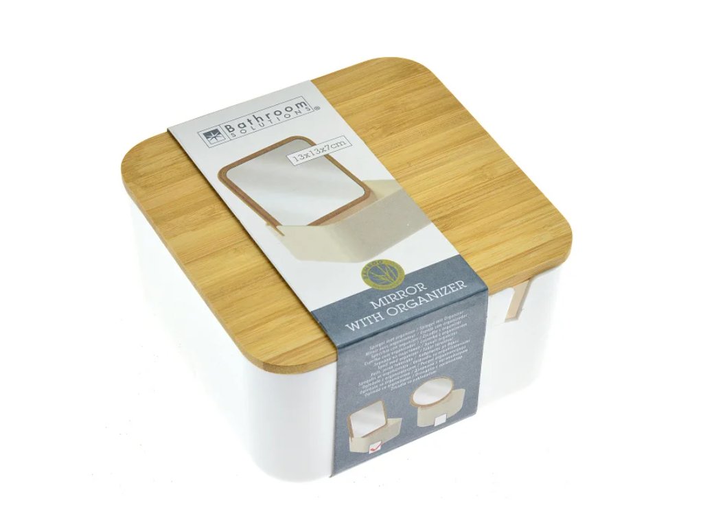 Tükörrel ellátott bambusz fedél, minőségi műanyag rendezővel kiegészítve – helytakarékos megoldás, amely elrejti ékszereit vagy apróságait, és emellett stílusosan is mutat.