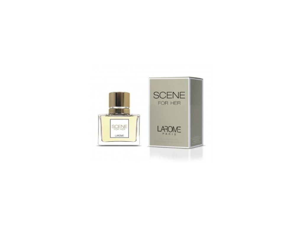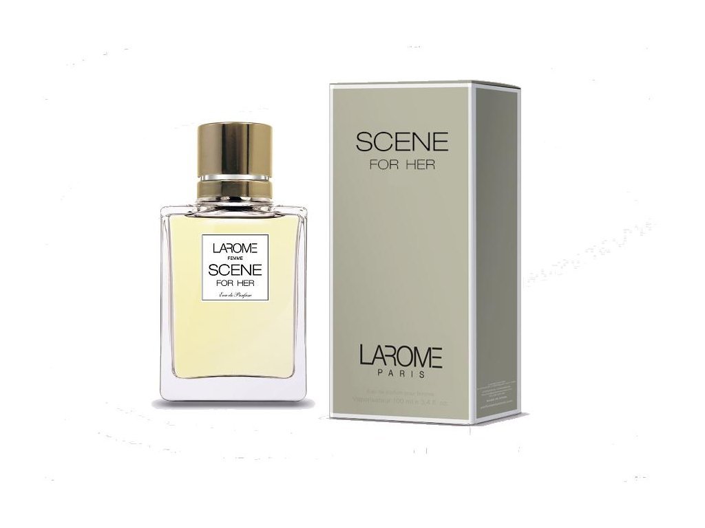 A Larome Scene for Her zamatos őszibarackkal és zöld mandarinnal nyit, amelyeket fűszeres méz von be. A szívjegyekben a frézia, a narancsvirág és az illatos osmanthus harmóniája bontakozik ki. Az illatot egy érzéki, megnyugtató kakaós alap teszi emlékezetessé. A domináns barackillatot lassan követi a frézia és a méz melegsége.