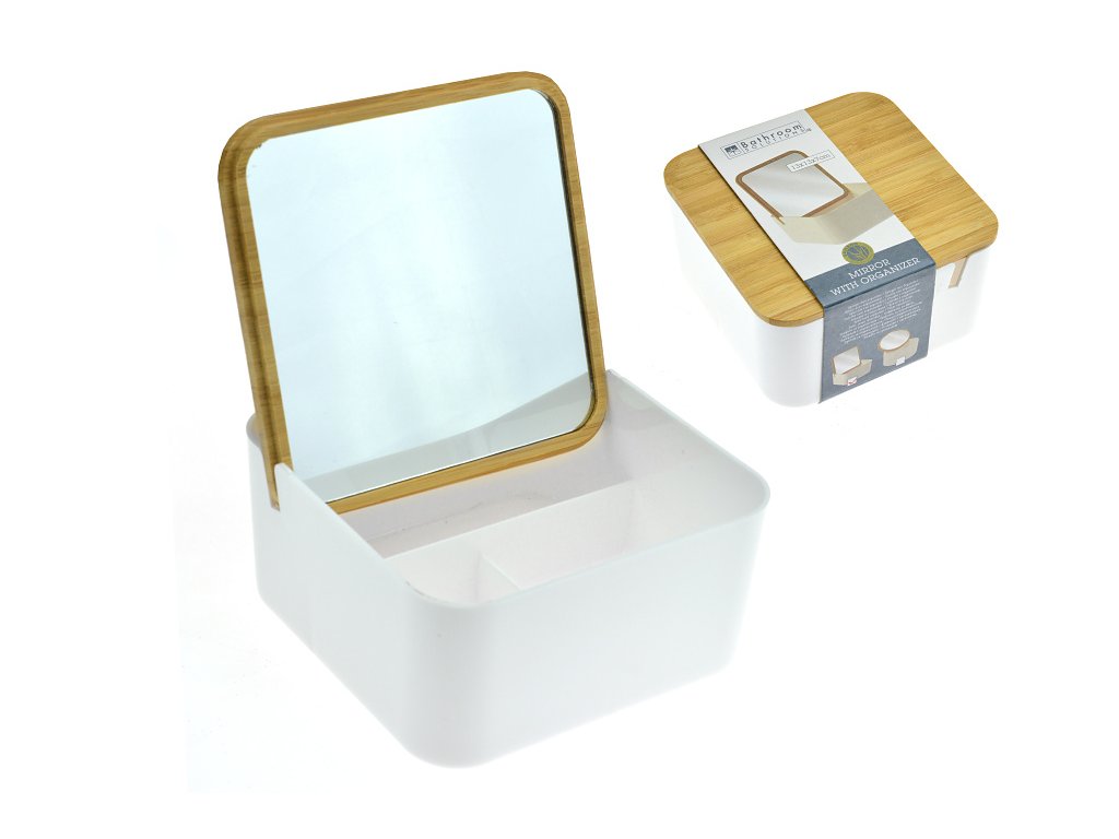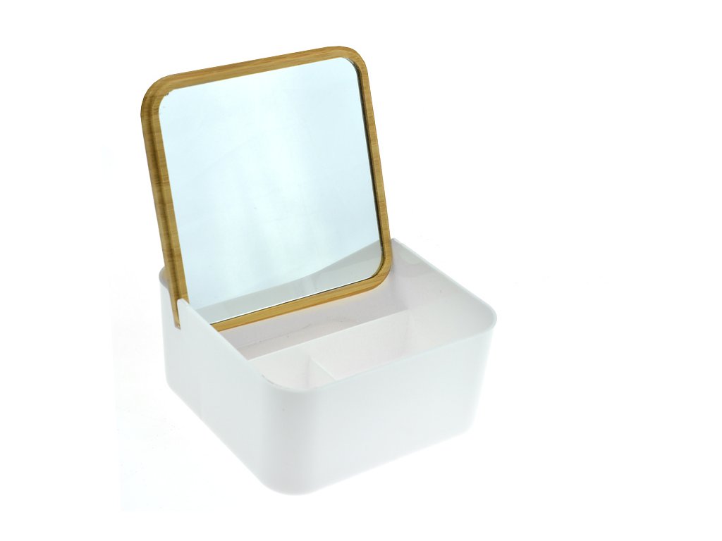 Tükörrel ellátott bambusz fedél, minőségi műanyag rendezővel kiegészítve – helytakarékos megoldás, amely elrejti ékszereit vagy apróságait, és emellett stílusosan is mutat.