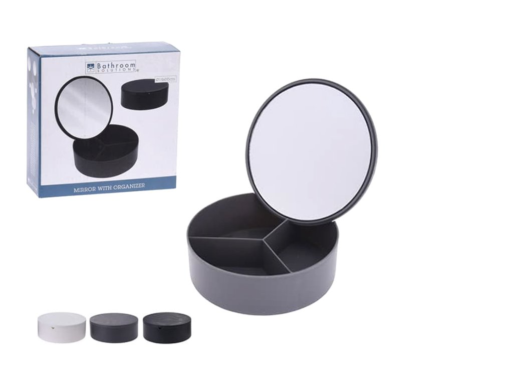 Kerek organizátor kozmetikai tükörrel – 14 cm